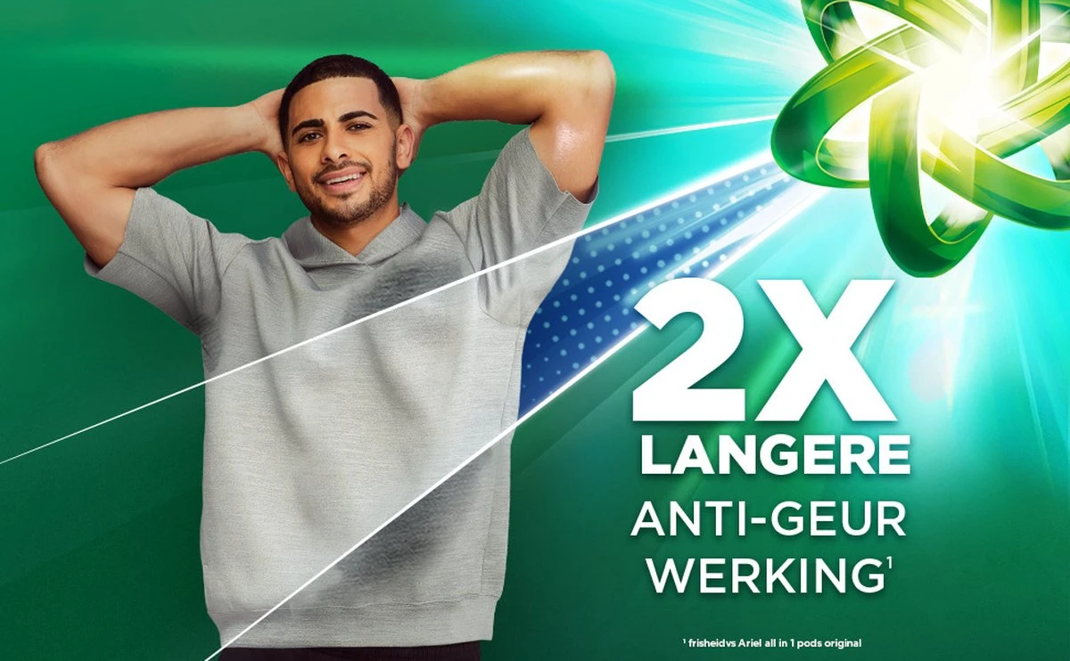Ontdek Ariel Pods+ Wasmiddel + Actieve Geurbestrijding. Ze worden nu geleverd met een extra blauw vak en bieden een 2x langere anti-geurwerking (in vergelijking met Ariel All in 1 Pods Original Clean & Fresh in opslag). Ze zijn gemaakt in Frankrijk en ontworpen voor koud water met de unieke Cool Clean-technologie. Bij contact met water lost het laagje op om krachtige vlekverwijderende technologieën vrij te geven en Ariels diepe en sterke reiniging van Pods+ Actieve Geurbestrijding te bieden. Daarnaast kunnen de Ariel Wasmiddel Pods nu helpen plastic te verminderen dankzij hun recyclebare Ecolclic-kartonnen doos. Het is gemaakt met 70% gerecyclede vezels en bevat maximaal 5% plastic.