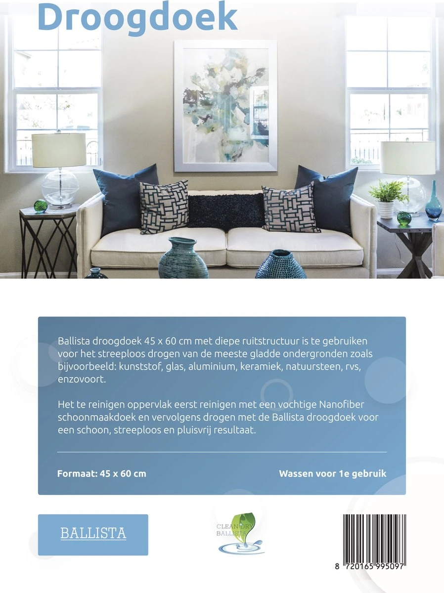 Ballista Ramenset Raamdoeken Droogdoek 45 X 60 Cm + Nanofiber 40 X 40 Cm Beide In Het Blauw Klasse 1