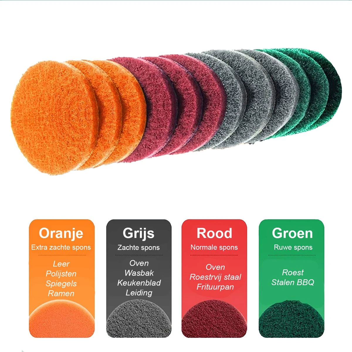 Moe van de saaie huishoudelijke schoonmaak? Probeer dan deze 25-delige borstelset met schuursponsjes die op elke accuboormachine of slagschroevendraaier bevestigd kunnen worden. Krijg hardnekkige schoonmaakklussen eenvoudiger en beter geklaard!