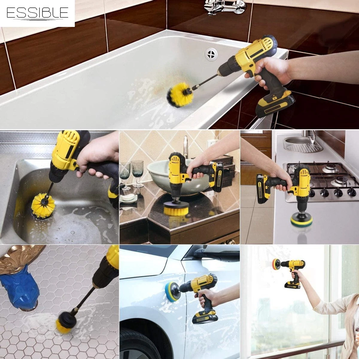 ESSIBLE Borstelboor – Set 20 Stuks – Schrobborstel – Polypropyleen – Borstel Boormachine – Schrobborstel – Schuurborstel – Automatische Reiniging – 20 Delige Borstelset Voor Boormachine
