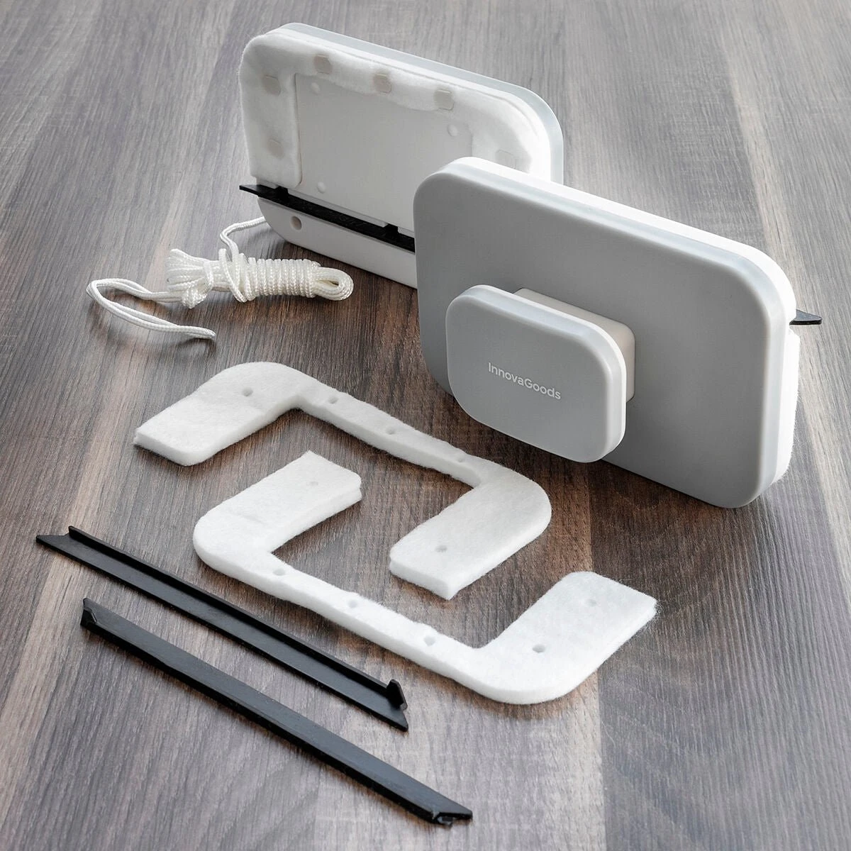 De magnetischeruitenreiniger van Klinduo InnovaGoods maakt het schoonmaken van glazenoppervlakken zoals ramen, horren, schuifdeuren enz. gemakkelijker en handiger.Dankzij het originele dubbelzijdige magnetische ontwerp is het een grote hulpbij schoonmaaktaken en bespaart het tijd en moeite. Deze magnetische glasreiniger glijdt tegelijkertijd over hetglasoppervlak aan de voor- en achterkant, waardoor een grondige en effectievereiniging mogelijk is.
