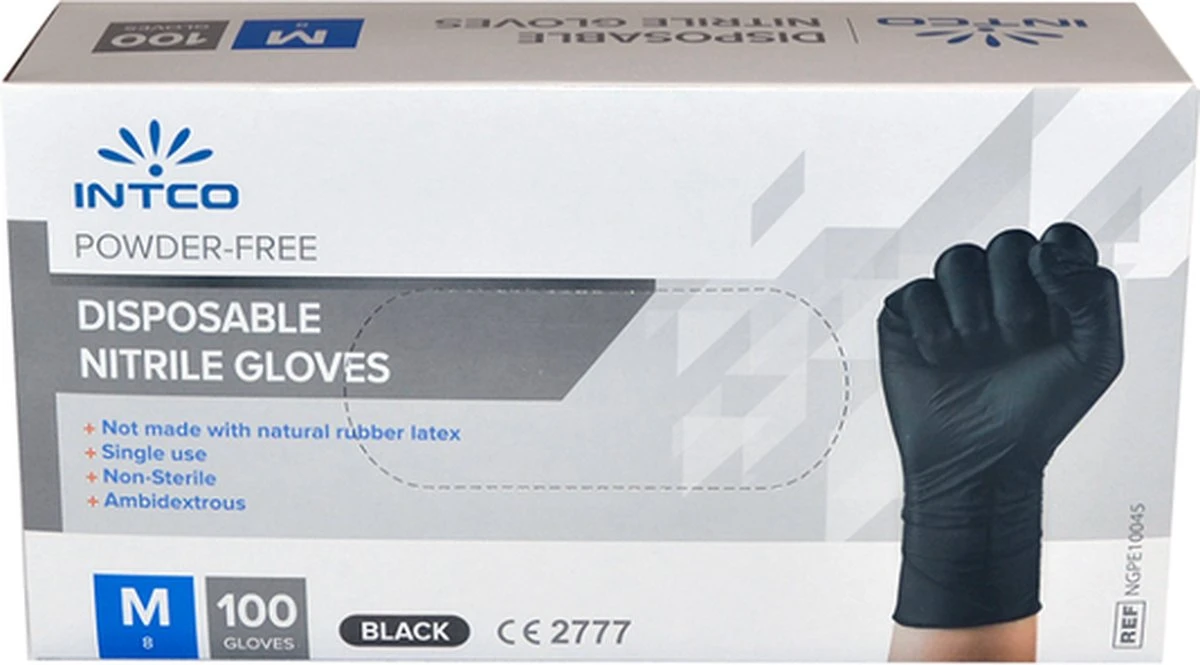 Intco Nitril Handschoenen – Latex Vrij – Zwart – 100 Stuks – Maat Medium