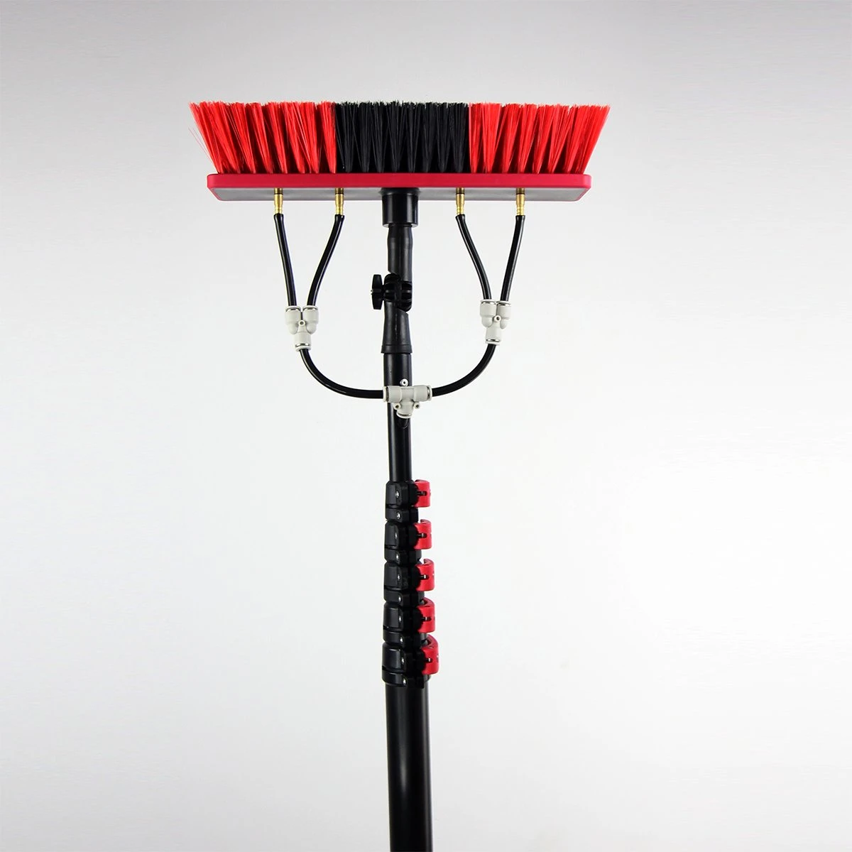 De Kibani telescoop borstel 9m is uitgerust met een uitschuifbare steel van hoogwaardig aluminium. De steel is gemakkelijk uitschuifbaar door de rode klemmen die op de steel zijn bevestigd. De telescoop borstel past op een Gardena koppeling, wat ervoor zorgt dat deze makkelijk aan te sluiten is aan uw watertoevoer. De Kibani telescoop borstel beschikt over maar liefst 4 waterslangen, bij concurrenten zijn dit er vaak maar 2.