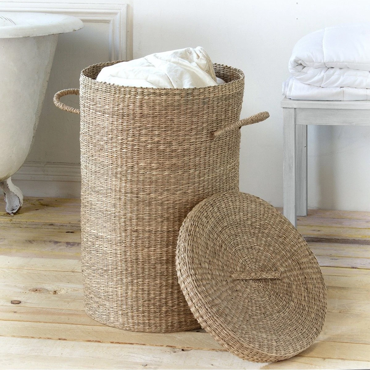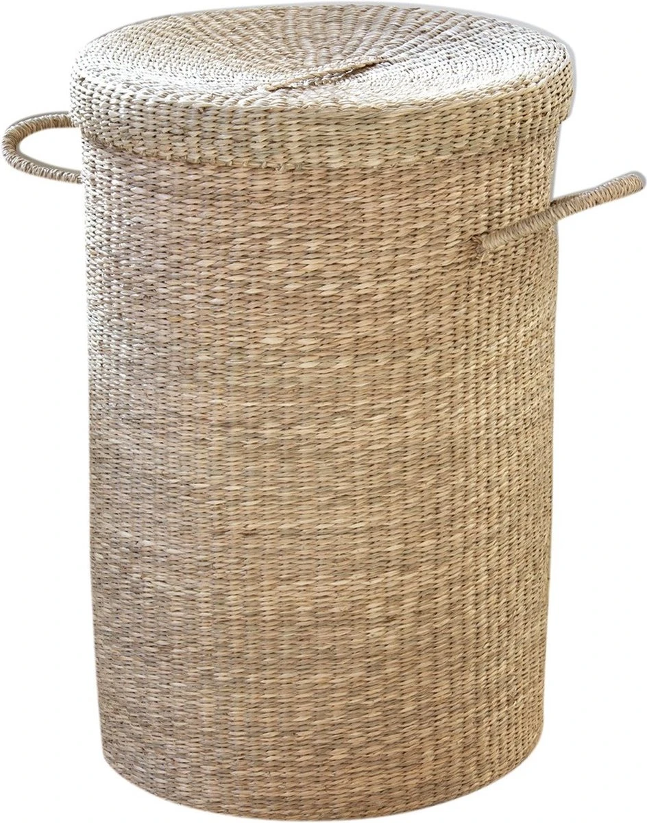 Ontdek onze natuurlijke wasmand om uw was gemakkelijk en uit het zicht op te bergen. Deze wasmand is gemaakt van natuurlijke zeebies, is robuust en waterbestendig. Het zal perfect zijn voor uw badkamer, slaapkamer of wasruimte. Met zijn deksel en handvatten is hij zeer praktisch om van de ene kamer naar de andere te dragen. Het grote for Maat van Deze mand is ideaal voor het opbergen van wasgoed voor meerdere dagen en zal de perfecte opbergplaats zijn voor een gezin! Afmetingen: Diameter 40 cm x Hoogte 60 cm Materiaal: Natuurlijke zeebies