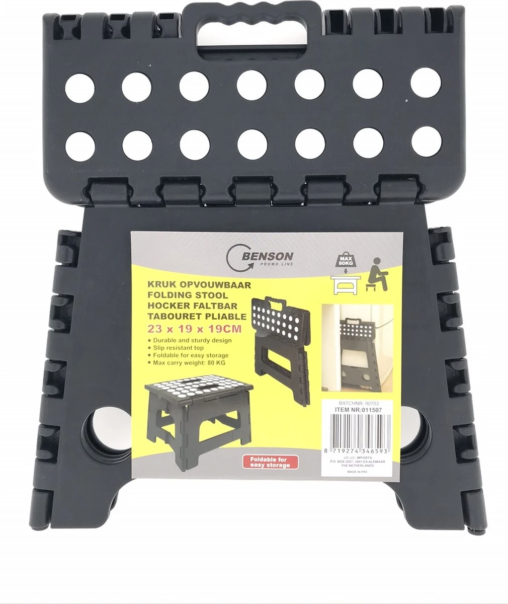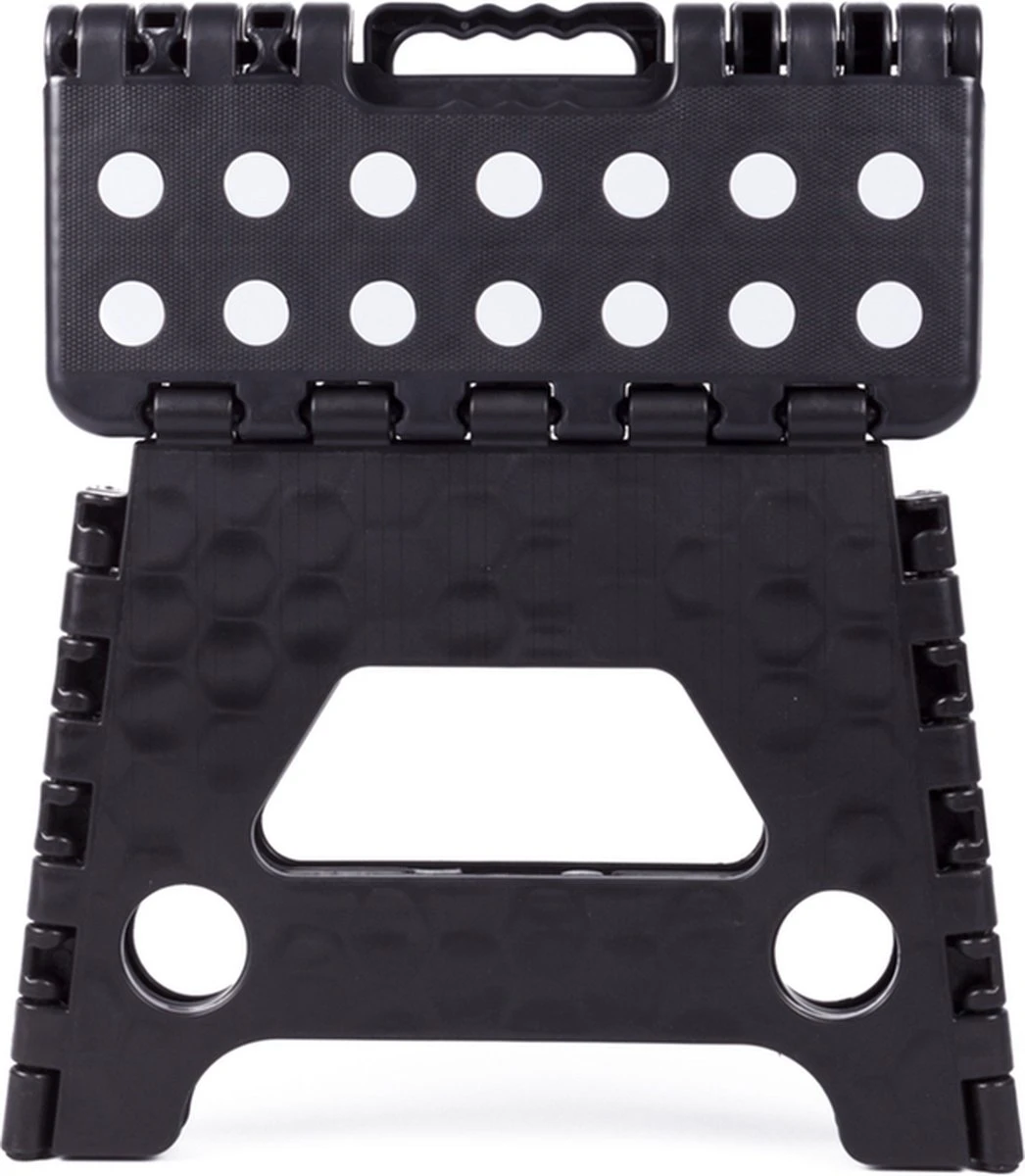 Opvouwbare Kruk Klein Zwart/Wit Deze opvouwbare kruk is zeer geschikt om te gebruiken als opstap voor bijvoorbeeld in de keuken. De kruk is zwart met witte stippen en volledig opvouwbaar waardoor je deze makkelijk kunt opbergen. De uitgevouwen afmetingen van de kruk zijn: 23x19x19 cm. Kenmerken: