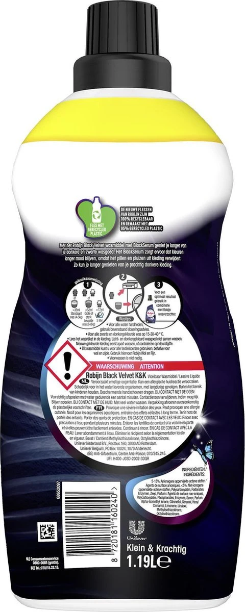 Robijn Klein & Krachtig Classics Black Velvet Vloeibaar Wasmiddel – 2 X 34 Wasbeurten – Voordeelverpakking