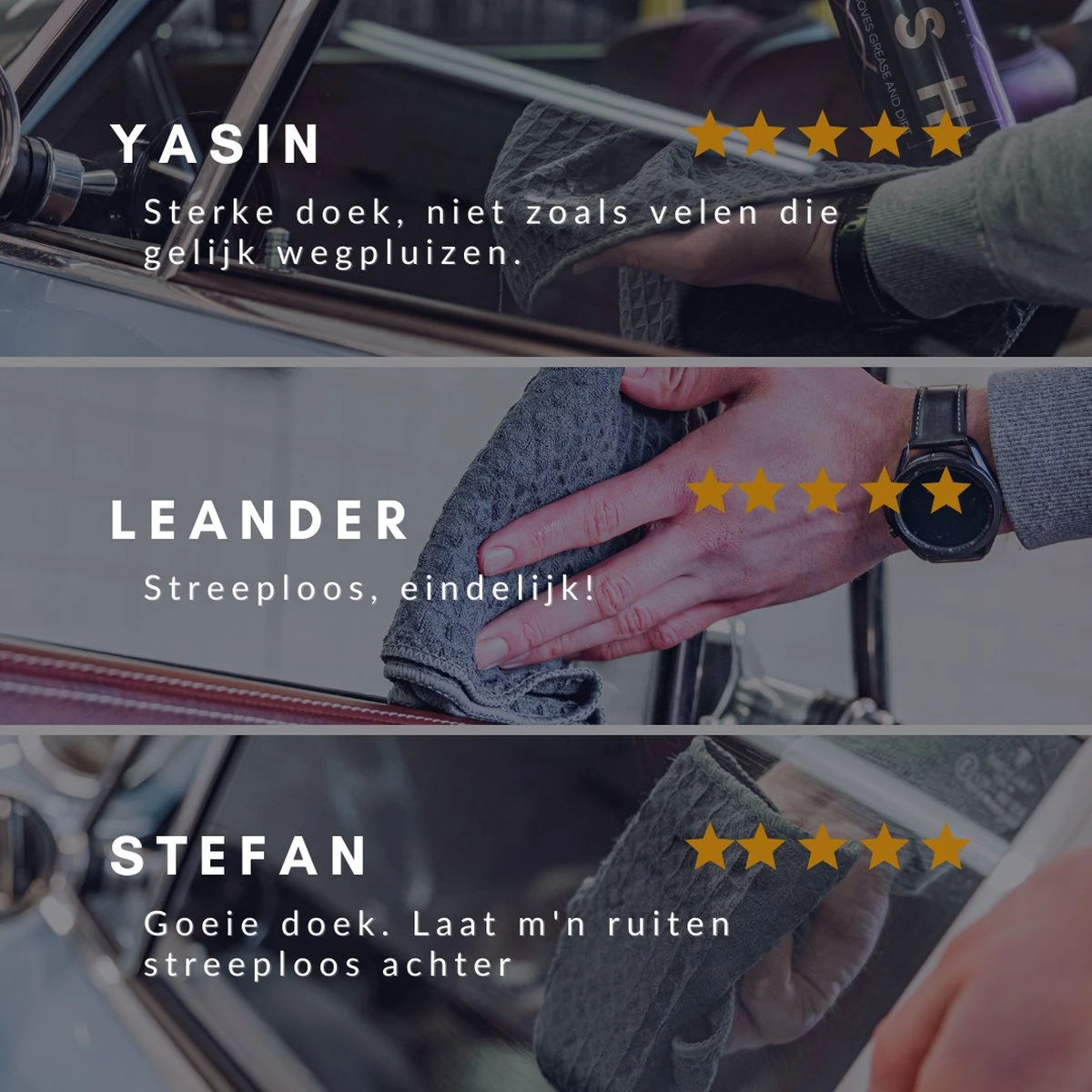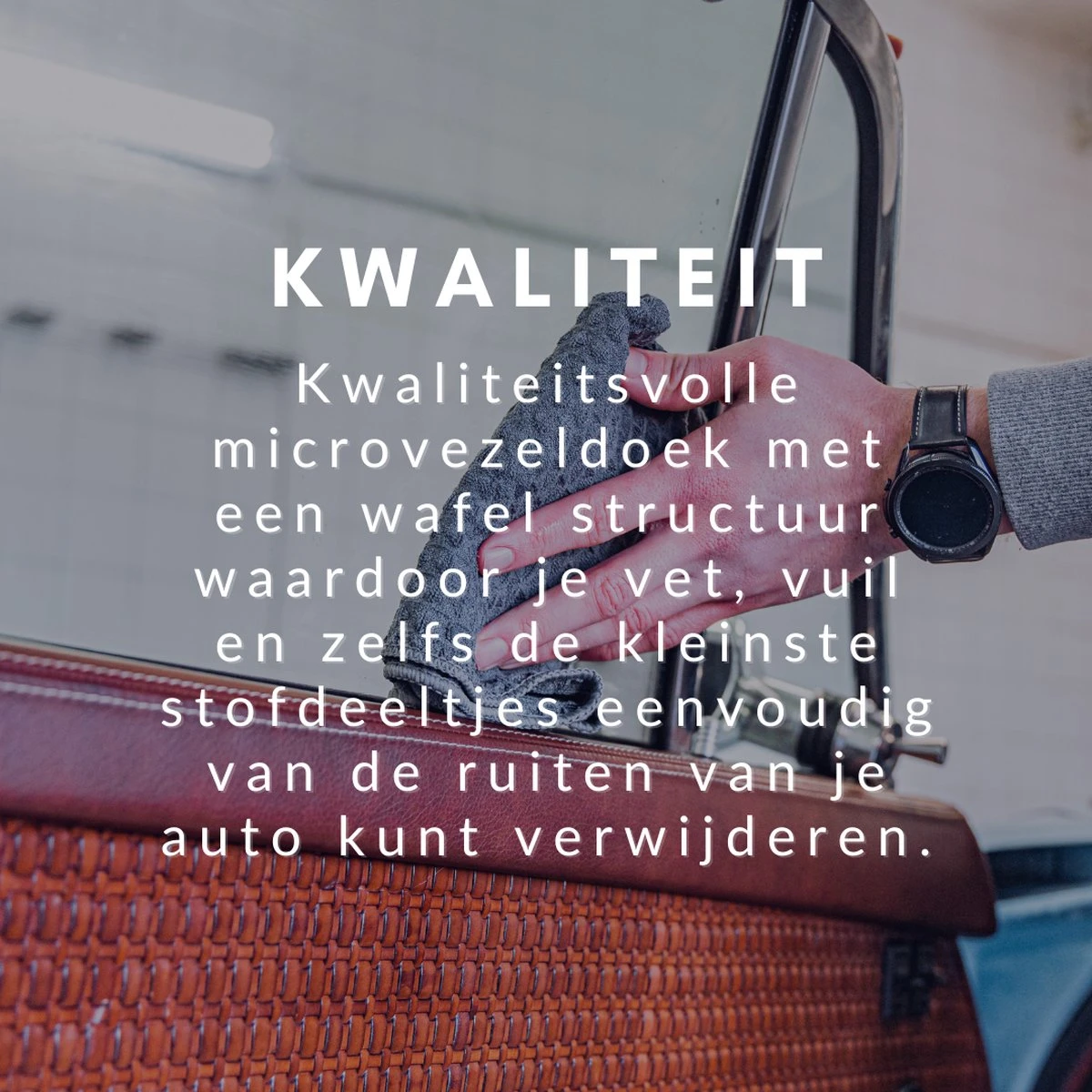 Een kwaliteitsvolle microvezeldoek met een wafel structuur waardoor je vet, vuil en zelfs de kleinste stofdeeltjes eenvoudig van de ruiten kunt verwijderen. Deze glasdoek neemt meerdere voordelen met zich mee.