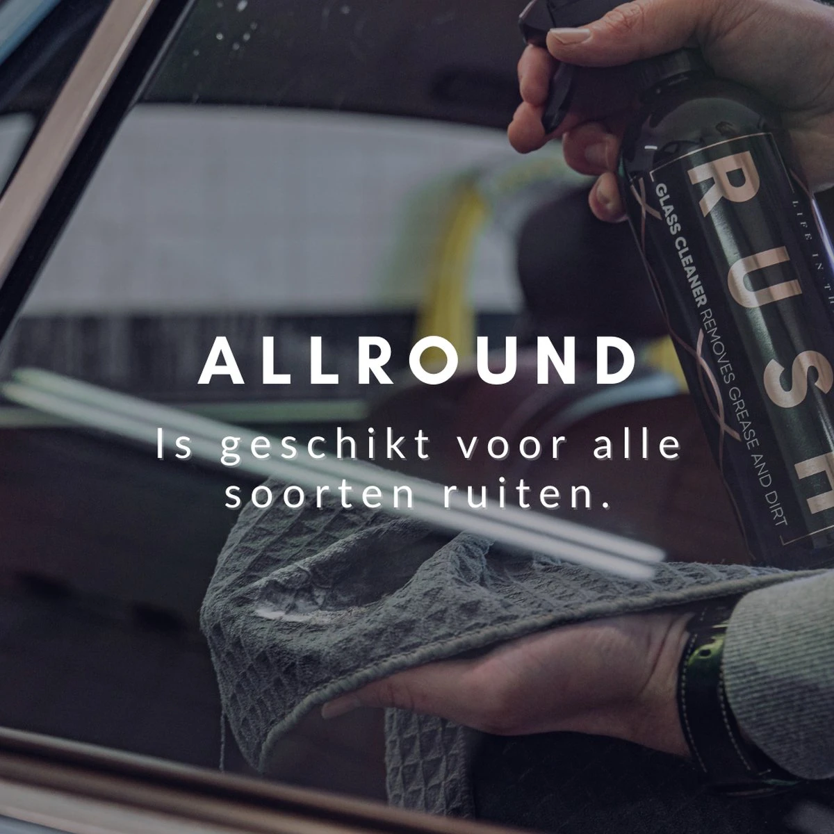 Glass Cleaner is een glasreiniger die speciaal ontwikkeld is voor het moeiteloos, veilig en effectief reinigen van glas en kunststof. De professionele glasreiniger verwijdert vingerafdrukken, vet, vuil en aanslag. De zorgvuldig uitgekozen combinatie van ingrediënten zorgt voor een streep- en vlekvrij resultaat. RUSH Glass Cleaner is met zorg is ontwikkeld, getest en geproduceerd in Nederland.