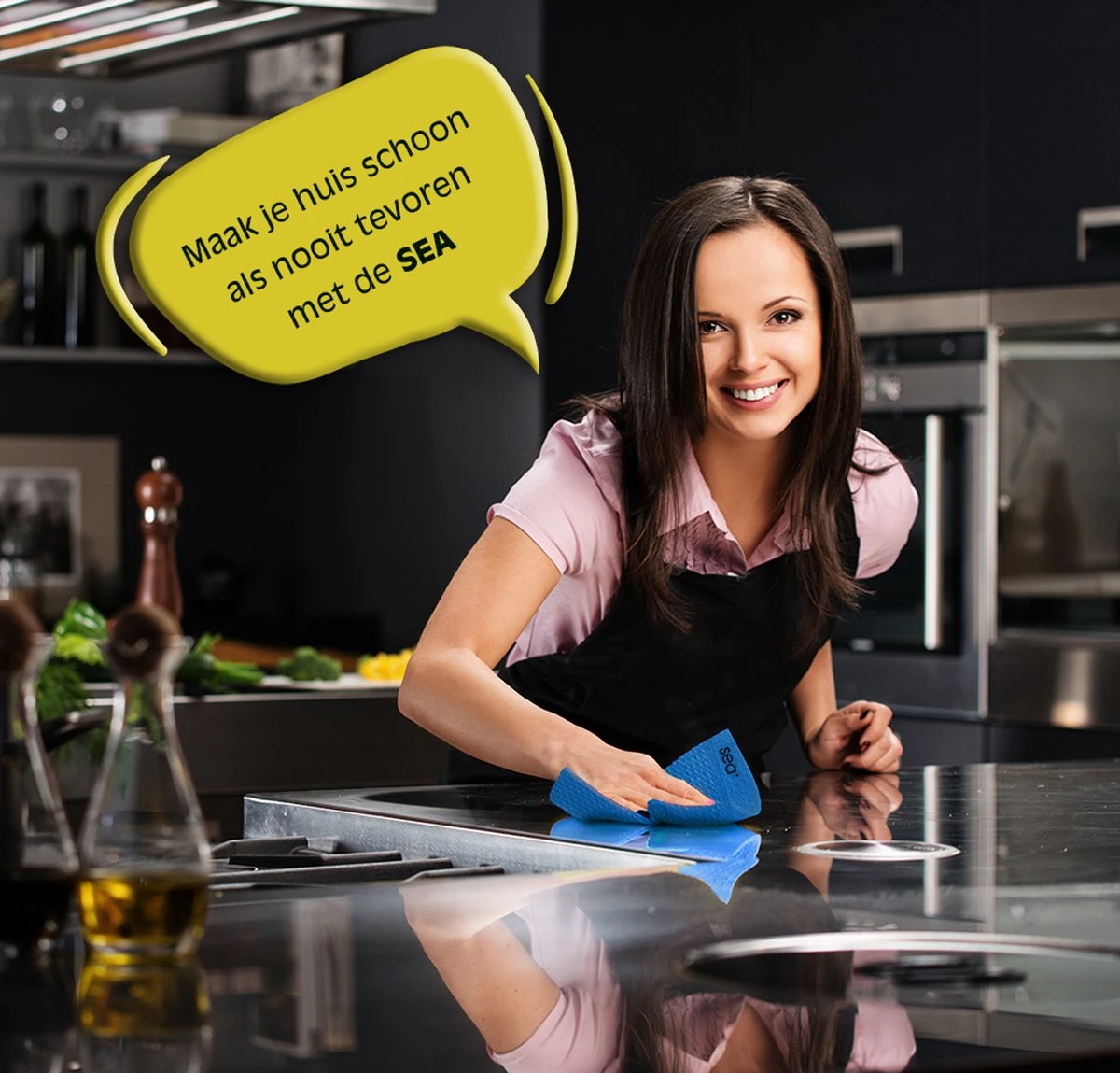 Keukenkastjes, badkamertegels, auto’s of ramen met de microvezeldoeken van SEA maakt u in zeer korte tijd alles schoon zonder sporen na te laten.