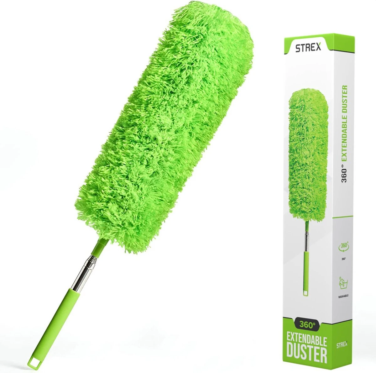 Ook zo klaar met hoge spinnenwebben en stof? Met de Strex telescopische plumeau kom jij makkelijk bij het plafond. De microvezel kop neemt elektrostatisch stof, pollen en andere deeltjes op en vangt deze op als een magneet. Door het stevige maar lichtgewicht ontwerp wordt schoonmaken efficiënter dan ooit.