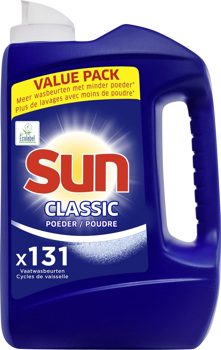 Sun Classic Ecolabel vaatwaspoeder verwijdert de meest hardnekkige vlekken.