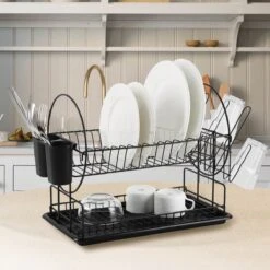Kitch&Life Afdruiprek Oprolbaar – Mat Zwart – Pannenonderzetter – Afdruipmat – Keukenrek 3-in-1