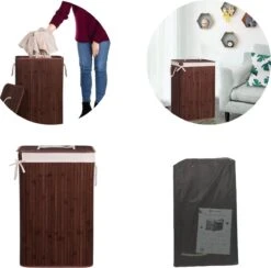 Springos Wasmand | Met Deksel | Opvouwbaar | 72 Liter | Met Uitneembare Waszak | Wasmand | Bruin